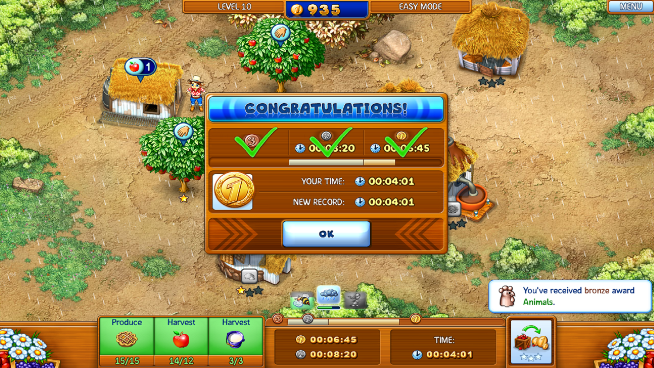 Help Emily restore her farm, or soon it'll be a chemical waste site! Grow wheat, feed animals, and produce all kinds of goods. Fight Mr. Big and his lackeys. Thwart all efforts to ruin your farm. Get lots of awards for your victories. Special bonuses will aid you in your arduous task by helping you chase away evildoers, increase Emiy's speed, and create various useful effects. A wonderful, prosperous farm will be yours if you succeed!