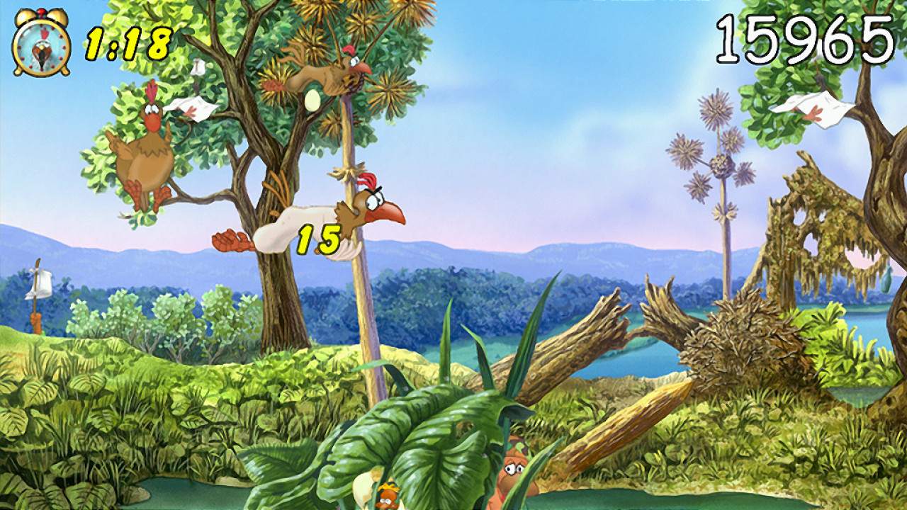 Ob auf der Skipiste, in fernöstlichen Welten oder in der Karibik: Level für Level, über Stock und Stein verfolgen Sie die tierischen Feinde. Und die kontern geschickt mit Wurf-geschossen in Form heranfliegender Eier. Nach Naturgewalten wie sengender Wüstenhitze und nordischer Kälte tritt als letzte große Herausforderung ein übergroßes punktespendendes Ei in Erscheinung.