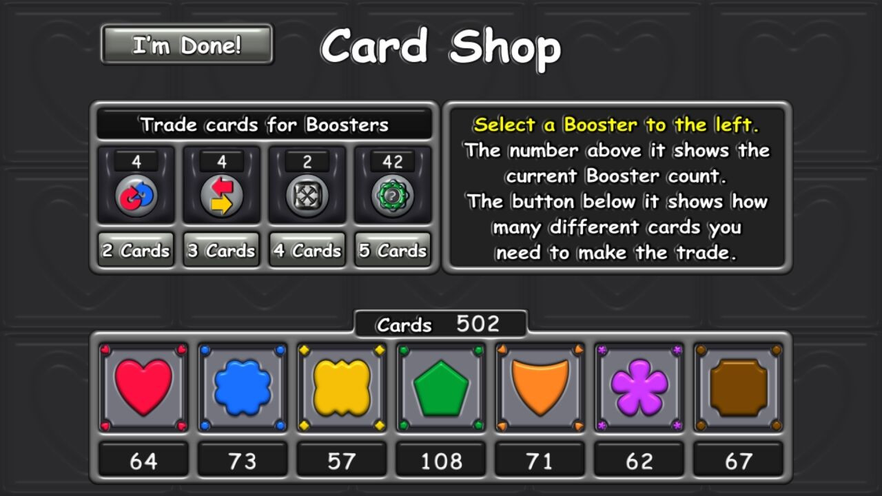 · 3 different Achievement areas, Progress, Challenge and For Fun. A Card Shop to trade for Boosters and a Themes area to change borders, backgrounds and in-game music.