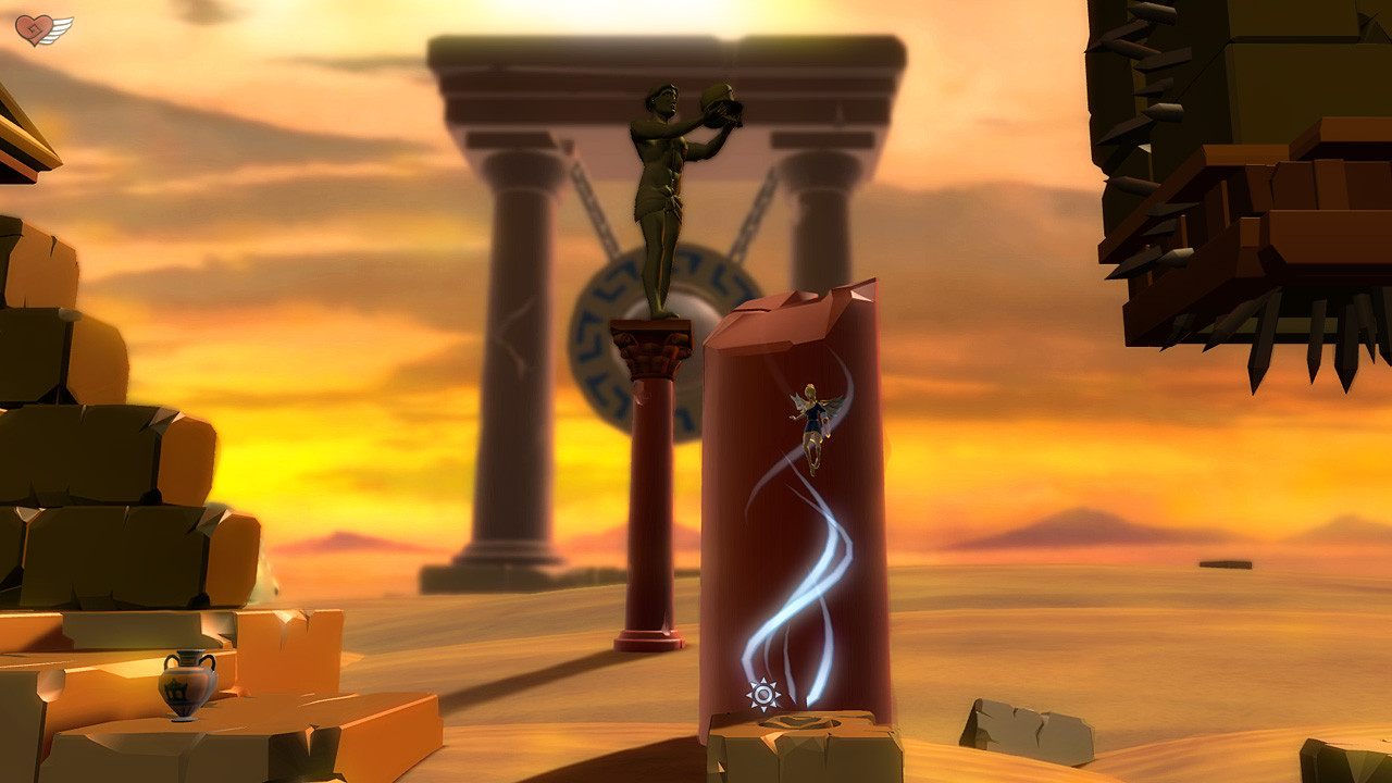 Auf der Suche nach ihrem Herzensfreund Ikarus verlässt die geflügelte Nyx ihren Wolkenpalast, um in den Ruinen des alten Griechenlands nach dem Vermissten zu suchen. Die Welt dort unten ist ein postapokalyptisches Trümmerfeld, doch die Götter des Olymp sind Nyx wohlgesonnen. Schleudern Sie Blitze wie Zeus, befehligen Sie die Winde wie Äolus und kontrollieren Sie das Feuer wie Helios. Bekämpfen Sie Hydras, surfen Sie über glühende Sanddünen und setzen Sie die interaktiven Elemente geschickt ein, um die Umgebung zu verändern, Geschoße auf Gegner zurück zu lenken und Nyx auf ihrer Suche nach Ikarus zu unterstützen.