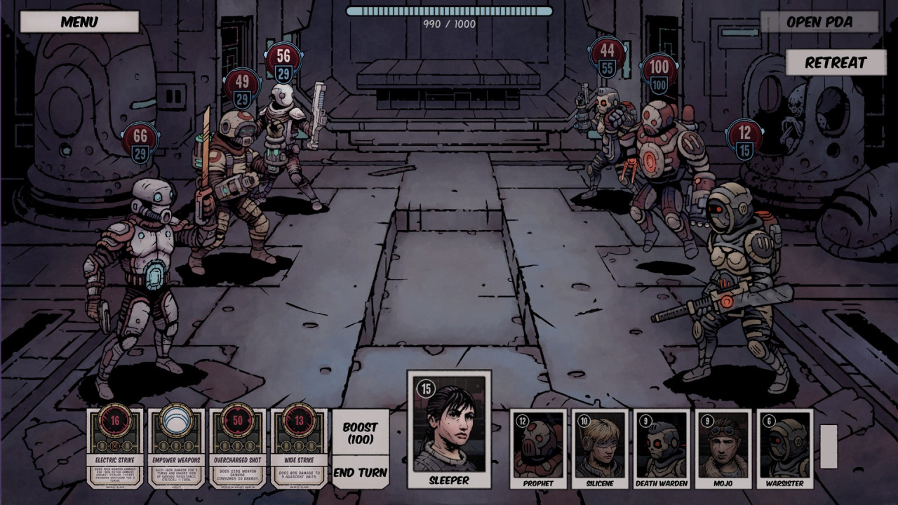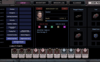 Stelle eine Gruppe von bis zu drei Söldnercharakteren zusammen und mache dich mit ihnen auf, verlassene Schiffe innerhalb der Reichweite der Plündererbasis zu erkunden. Bei deiner Suche nach Beute und Hinweisen stößt du auf viele freundlich gesinnte Bewohner und Händler, aber noch häufiger auf verschiedene Feinde. Fordere sie heraus und besiege sie in taktischen, rundenbasierten Kämpfen. Dein sich ständig änderndes Arsenal aus Kampfaktionen besteht aus zufällig gezogenen Karten. Sammle Erfahrung für dich und deine Gruppenmitglieder, plündere Leichen und kehre zu deiner Basis zurück, um deine Ausrüstung aufzuwerten und deine Vorräte wieder aufzustocken. Im Heimatschiff der Plünderer kannst du die Stufe deiner Söldner erhöhen, sie heilen, ausrüsten, ihre Ausrüstung aufwerten, ihre Energie für lebenserhaltende Systeme während Missionen aufladen und neue Söldner rekrutieren.