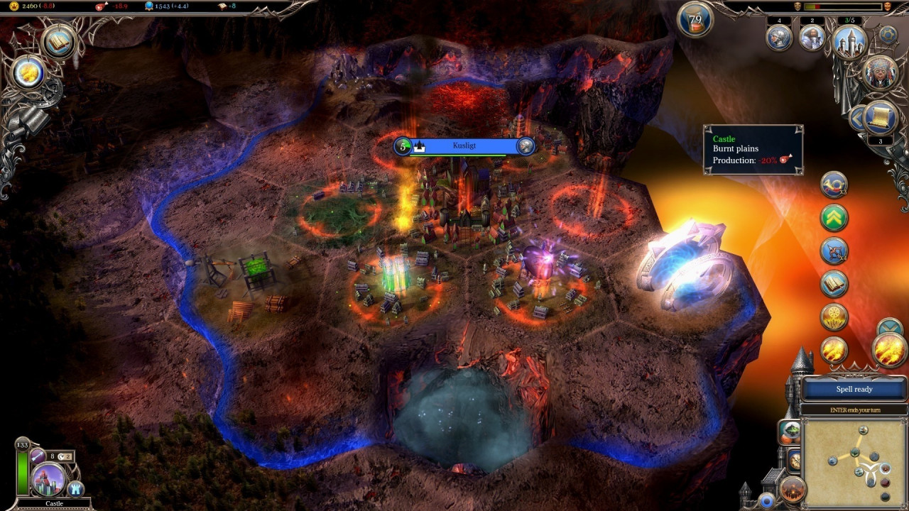 - Proudly wield your magical power – Not only a superb battlefield commander, your immense magical powers will also aid you in your conquest. Carefully research over 170 spells and choose what to specialize in, from direct attack spells to terraforming, or maybe align yourself to one of the Gods to harness their powerful blessings. With time, you are even capable of customizing each spell using powerful glyphs.