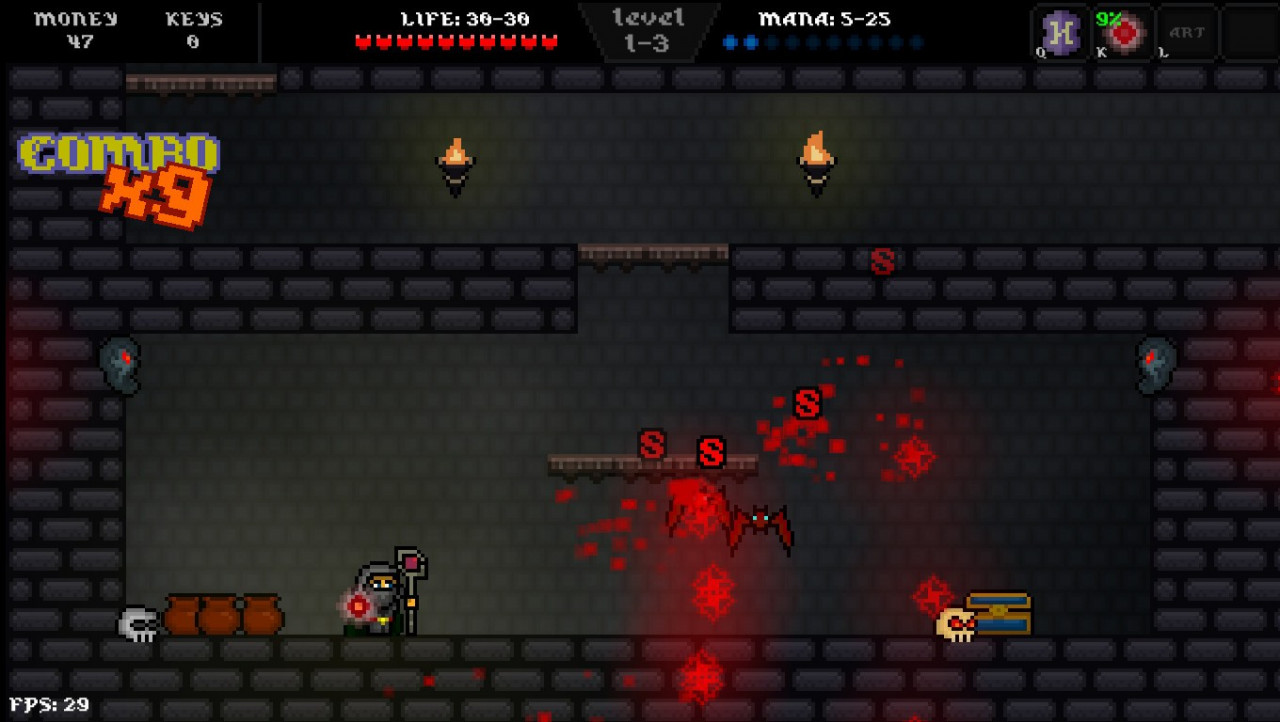 PLPA is a dynamic platformer with a combo system and special strikes, there is also a bit of rogue-lite genre. The principal aim is to get through all floors of the Dark Tower and outfight the main antagonist a Evil Mage.